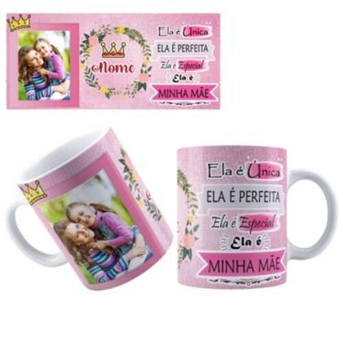 Caneca personalizada de porcelana de alto brilho, com interior e alça branca com linda Estampa do dia das Mães.