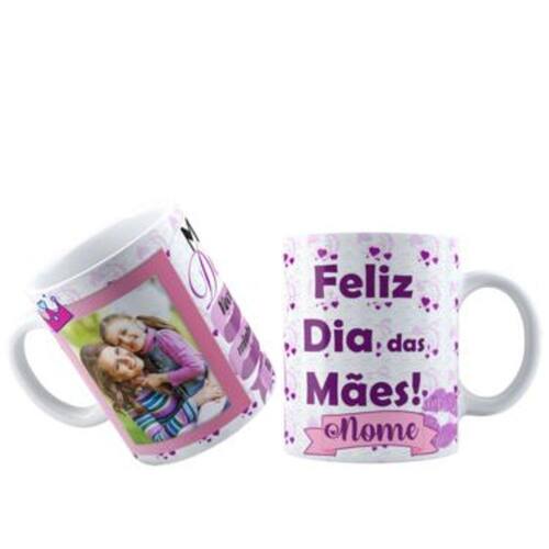 Caneca personalizada de porcelana de alto brilho, com interior e alça branca com linda Estampa do dia das Mães.