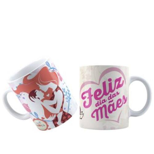 Caneca personalizada de porcelana de alto brilho, com interior e alça branca com linda Estampa do dia das Mães.