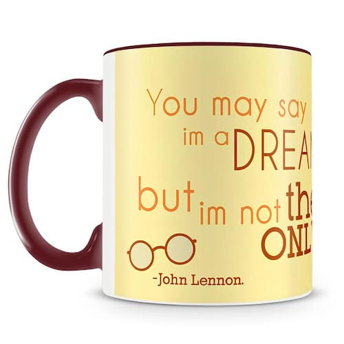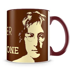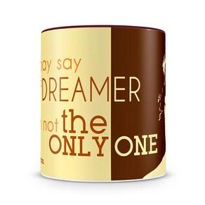 Caneca personalizada de porcelana de alto brilho interior e alça marrom com estampa do Beatles Jhon Lennon Imagine.
