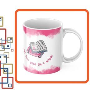 Desfrute de um momento relaxante com um cafezinho quentinho e um bom livro na sua caneca xícara de porcelana personalizada. Com capacidade de 325ml, ela é perfeita para acompanhar suas leituras e viagens, proporcionando conforto e praticidade.