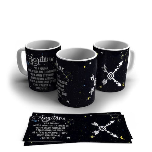 Especificações Técnicas Marca: Canecastop Modelo: Signo Do Zodíaco Sagitário Capacidade: 325 ml Material: Porcelana
