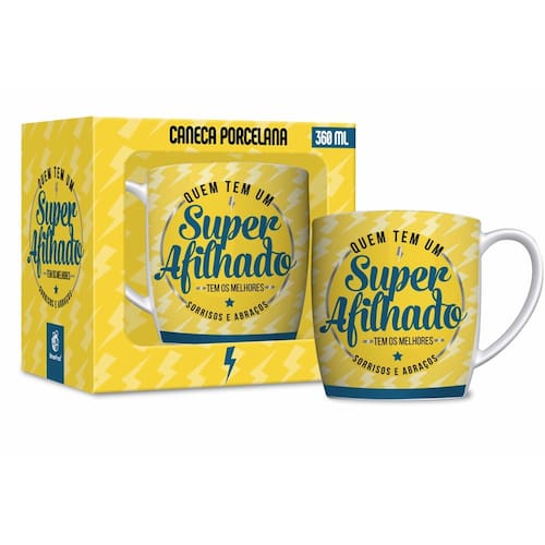 A Caneca ''Quem tem um super afilhado'' é perfeita para presentear. Fabricada em porcelana de alta qualidade que garante maior durabilidade durante seu uso. Com capacidade para 360ml, possui uma delicada e exibe a escrita: "Quem tem um super afilhado tem os melhores sorrisos e abraços". Ela é perfeita para você apreciar aquele café quentinho ou chocolate quente super cremoso de um jeito todo especial. A Linha de Canecas Urban é um item essencial em qualquer café da manhã, além disso dá para usá-la como porta treco ou porta lápis.