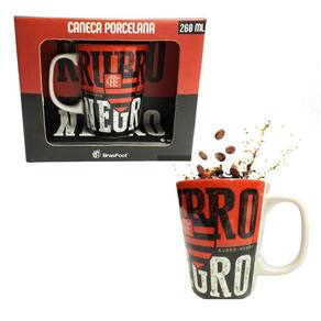 Caneca porcelana xícara rubro negro premium 260ml preto vermelho café clube flamengo oficial