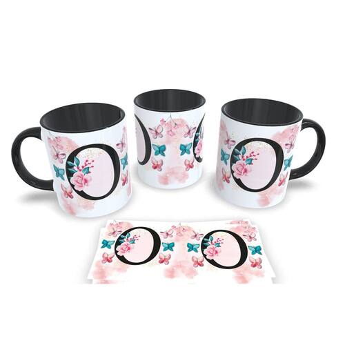 Caneca de porcelana de alto brilho, com alça e interior Preta Coleção Alfabeto Iniciais Nomes.
