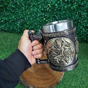 Desfrute da imponência da Caneca Gladiador. Feita com resina de alta qualidade e capacidade de 600ml, essa caneca tem um design detalhado em relevo, proporcionando um acabamento artesanal excepcional.