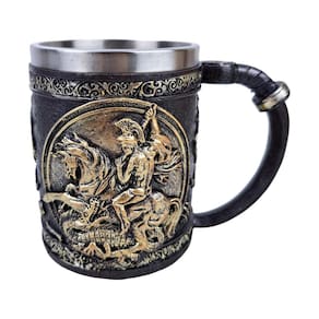 Caneca São Jorge de Resina Desfrute de sua bebida favorita de uma maneira única com a Caneca São Jorge de Resina da Tenda Medieval. Com um design 3D do São Jorge em destaque, essa caneca é perfeita para os amantes de itens medievais. Feita em resina durável na cor dourada e cinza, a caneca possui alça para um manuseio confortável. Não é adequada para uso em lava-louças ou microondas, mas é perfeita para bebidas quentes ou frias. Adicione um toque de história e estilo à sua coleção com esta caneca especial
