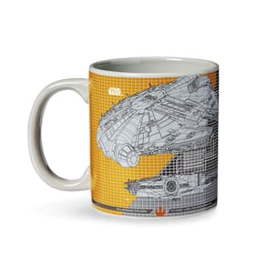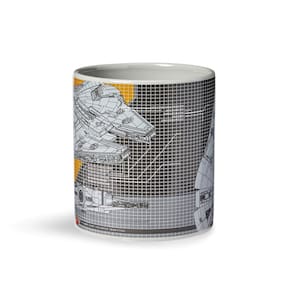 - Não fique enganado: esta caneca quadriculada apresenta várias perspectivas únicas do Millennium Falcon! Inclui esquemas de várias seções do navio!