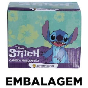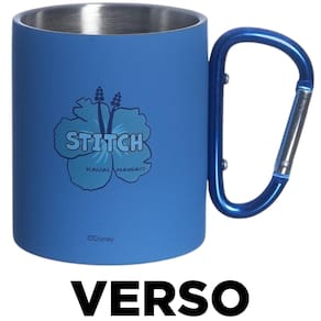 Caneca Stitch Aço Inox Azul Com Mosquetão Oficial Disney!