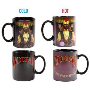 - Lindo design. A caneca lê Zoltar e quando líquido quente é derramado na caneca, o texto Your Wish Is Granted aparece magicamente.