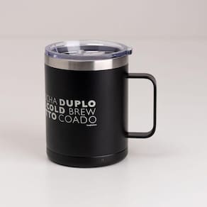 Toda em aço inoxidável e contando com 1 tampa com bocal, ela traz o nome de diversos tipos de cafés impressos na cor off-white e tem capacidade para 400 ml do seu café fresquinho. Sendo a caneca para escritório perfeita para levar pro trabalho e também uma ótima opção de presente, já que mantém a bebida fria por até 12 horas e quente por até 3 horas!