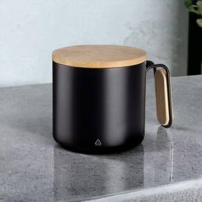 Além de sua funcionalidade, a caneca se destaca pelo seu design sofisticado. A tampa de bambu não só adiciona um toque de elegância natural, mas também representa um compromisso com a sustentabilidade. Ao optar por este material renovável, você está fazendo uma escolha consciente que contribui para a preservação do meio ambiente.