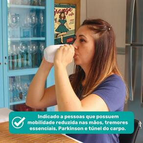A Caneca Térmica Adaptada foi desenvolvida para oferecer mais autonomia e conforto no momento de ingerir líquidos, especialmente para pessoas com mobilidade reduzida nas mãos ou condições específicas de saúde.