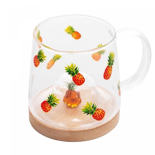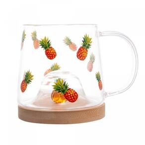 Caneca de Vidro Borossilicato Resistente ao Calor com Pires de Bambu Abacaxi - Lyor