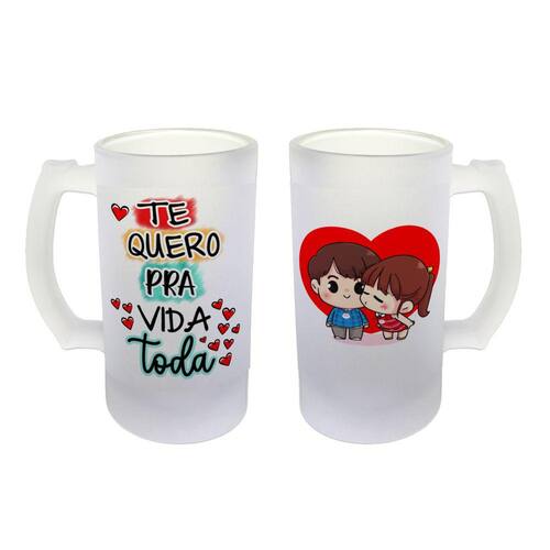 SEJA BEM VINDA(O)!!A Hira Design Canecas e Produtos tem a missão de garantir a satisfação total a você, tanto nos produtos quanto no atendimento. Assim estabelecendo uma relação de confiança e satisfação.Tenha tranquilidade de comprar com quem esta disposto a te oferecer o melhor atendimento. Caso tenha algum problema após a compra, conte com a nossa equipe de pós-venda para solucioná-lo!MAS O QUE VOCÊ VAI GANHAR COM ISSO?Com a Caneca Vidro Cerveja Chopp Namorados Te Quero Pra Vida Toda você vai fazer com certeza o alguém feliz presenteando com essa linda lembrancinha ou mesmo se presentear porque você merece!Faça uma surpresa para ele(a) e veja a reação dele(a).Você vai amar! O que levamos dessa vida são os bons momentos que fazemos para alguém que gostamos.VEJA ABAIXO AS DESCRIÇÕES DO SEU PRODUTO:Ideal para tomar aquela gelada (chopp ou cerveja)Material: Vidro JateadoCaneca importadaCapacidade de volume: 475 mlArte estampado direto na caneca, não desbota, não descola.Embalado com saquinho e fitinha para presente.Acompanha tag na alça para instruções / observações na caneca.- Pode ir no freezer, congelador-Utilizar a parte macia da esponja na lavagem manualAltura: 15.00 cmLargura: 8.00 cmComprimento: 10.00 cmPeso: 700 g