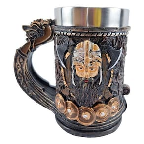 Caneca Viking Decorativa Cerveja Chopp Presente Coleção Caneca feita em resina copo de aço inox