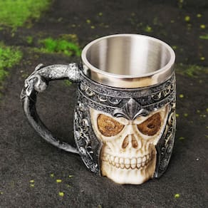 Caneca Viking Skull - Caveira Mostre personalidade marcante na hora de servir bebida para os convidados, sirva no crânio viking. Esse lindo canecão é feito em resina, possui interior totalmente em inox. Produto de ótima qualidade e acabamento. Ótima opção de presente ; - Conteúdo da embalagem: 1 caneca Viking Skull - Material: resina / inox - Tamanho aprox: 14 x 11 x 8,5 - Diâmetro da boca da caneca: 8,5 cm - Capacidade: 450 ml Ean: 7899946610250