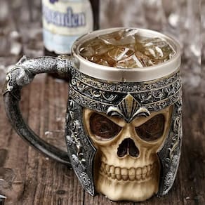 Caneca Viking Skull - Caveira Mostre personalidade marcante na hora de servir bebida para os convidados, sirva no crânio viking. Esse lindo canecão é feito em resina, possui interior totalmente em inox. Produto de ótima qualidade e acabamento. Ótima opção de presente ; - Conteúdo da embalagem: 1 caneca Viking Skull - Material: resina / inox - Tamanho aprox: 14 x 11 x 8,5 - Diâmetro da boca da caneca: 8,5 cm - Capacidade: 450 ml Ean: 7899946610250