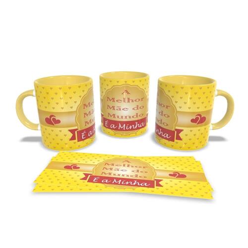 Caneca personalizada de porcelana de alto brilho, com interior e alça Amarela com linda Estampa da Coleção dia das Mães.