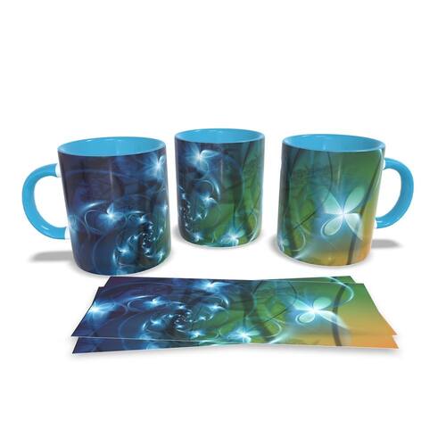 Caneca personalizada de porcelana de alto brilho, com interior e alça Azul com linda Estampa da Coleção Flores.