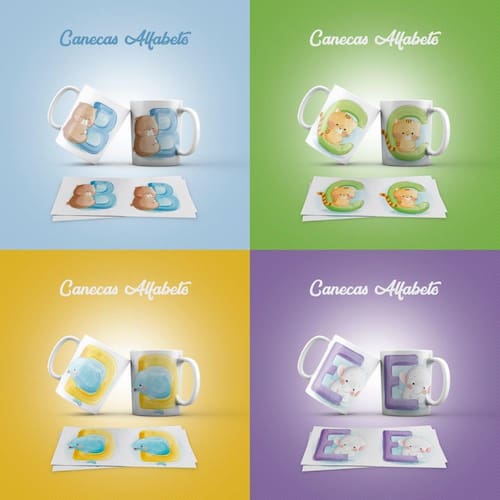 PRODUTO CANECA INFANTIL MODELOS ALFABETO