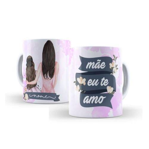 Caneca personalizada de porcelana de alto brilho, com interior e alça branca com linda Estampa do dia das Mães.