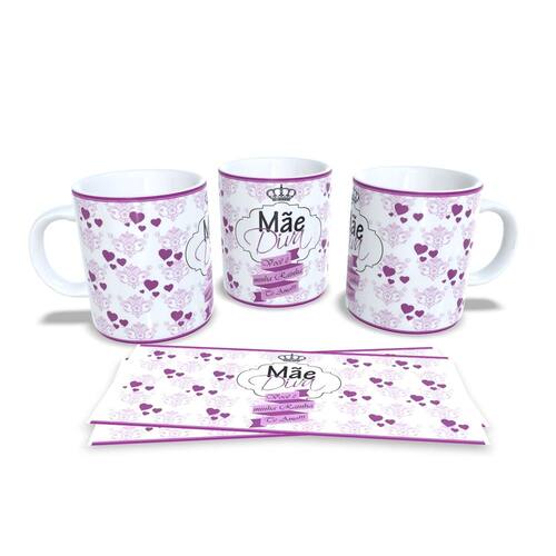 Caneca personalizada de porcelana de alto brilho, com interior e alça branca com linda Estampa da Coleção dia das Mães.