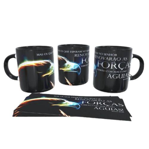 Caneca personalizada de porcelana de alto brilho, com interior e alça Preto com linda Estampa Tema Evangelico.