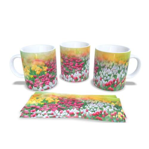 Caneca personalizada de porcelana de alto brilho, com interior e alça branca com linda Estampa da Coleção Flores.