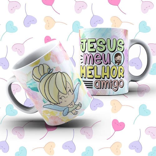Caneca personalizada de porcelana de alto brilho, com interior e alça branca com linda Estampa Tema Evangelico.
