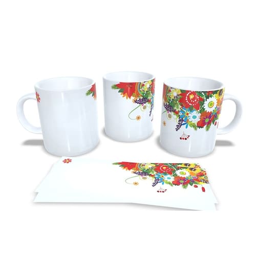 Caneca personalizada de porcelana de alto brilho, com interior e alça branca com linda Estampa da Coleção Flores.