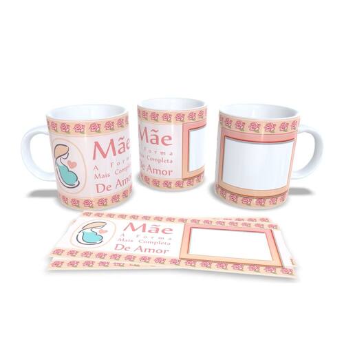 Caneca personalizada de porcelana de alto brilho, com interior e alça branca com linda Estampa da Coleção dia das Mães.