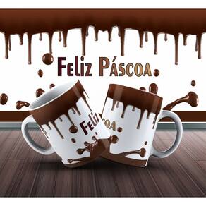 Caneca personalizada de porcelana de alto brilho, com alça e interior branca Coleção Páscoa.