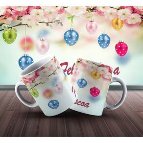 Caneca personalizada de porcelana de alto brilho, com alça e interior branca Coleção Páscoa.