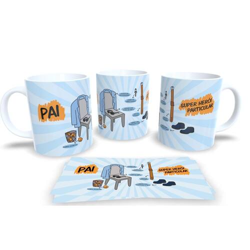 Caneca personalizada de porcelana de alto brilho, com interior e Alça branca Coleção dia dos Pais.