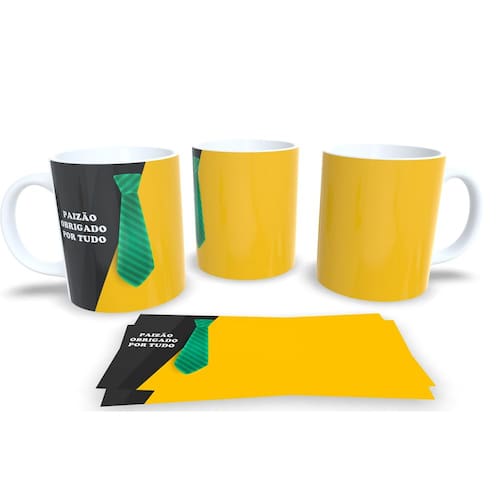 Caneca personalizada de porcelana de alto brilho, com interior e Alça branca Coleção dia dos Pais.