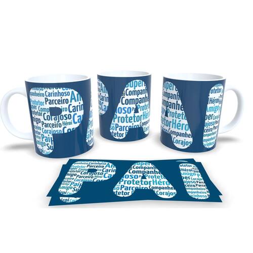 Caneca personalizada de porcelana de alto brilho, com interior e Alça branca Coleção dia dos Pais.