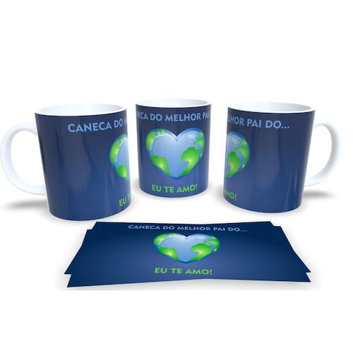 Caneca personalizada de porcelana de alto brilho, com interior e Alça branca Coleção dia dos Pais.