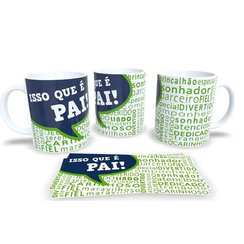 Caneca personalizada de porcelana de alto brilho, com interior e Alça branca Coleção dia dos Pais.