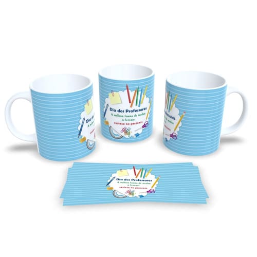 Caneca personalizada de porcelana de alto brilho, com interior e Alça branca Coleção dia dos Professores.