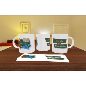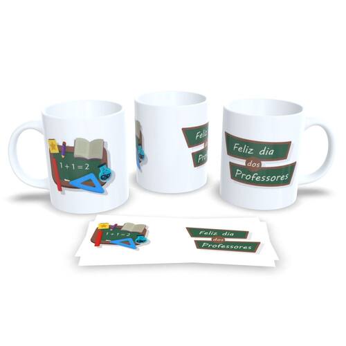 Caneca personalizada de porcelana de alto brilho, com interior e Alça branca Coleção dia dos Professores.