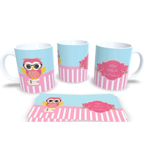 Caneca personalizada de porcelana de alto brilho, com interior e Alça branca Coleção dia dos Professores.