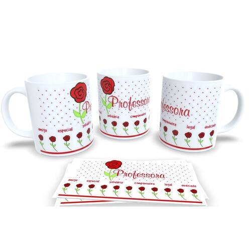 Caneca personalizada de porcelana de alto brilho, com interior e Alça branca Coleção dia dos Professores.