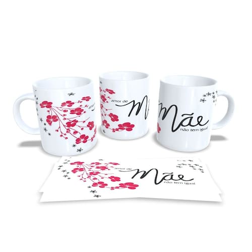 Caneca personalizada de porcelana de alto brilho, com interior e alça branca com linda Estampa da Coleção dia das Mães.