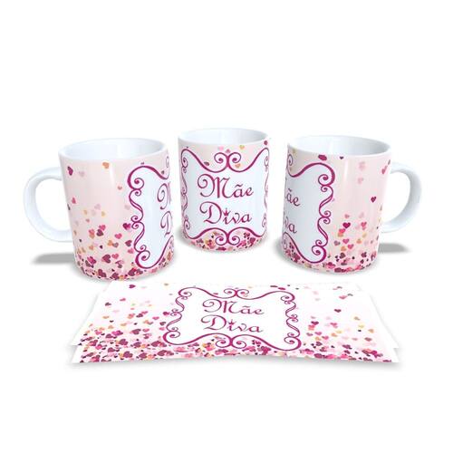 Caneca personalizada de porcelana de alto brilho, com interior e alça branca com linda Estampa da Coleção dia das Mães.
