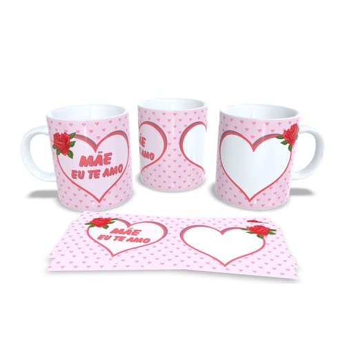 Caneca personalizada de porcelana de alto brilho, com interior e alça branca com linda Estampa da Coleção dia das Mães.