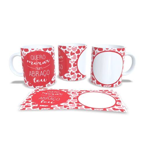 Caneca personalizada de porcelana de alto brilho, com interior e alça branca com linda Estampa da Coleção Dia dos Namorados.