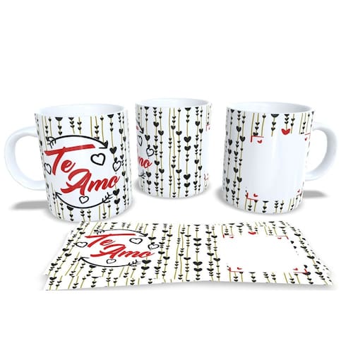 Caneca personalizada de porcelana de alto brilho, com interior e alça branca com linda Estampa da Coleção Dia dos Namorados.