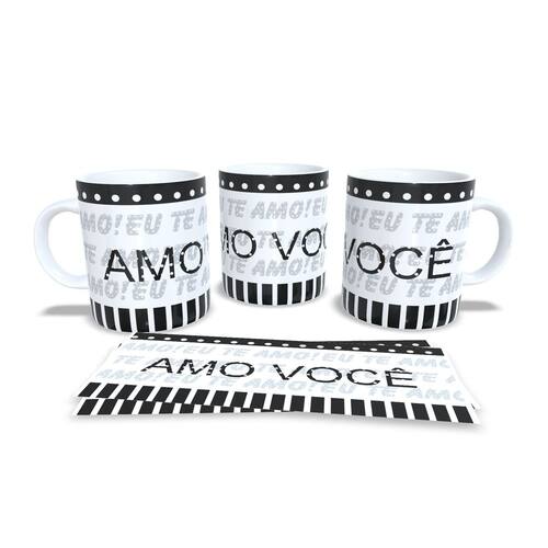 Caneca personalizada de porcelana de alto brilho, com interior e alça branca com linda Estampa da Coleção Dia dos Namorados.
