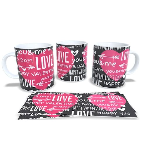 aneca personalizada de porcelana de alto brilho, com interior e alça branca com linda Estampa da Coleção Dia dos Namorados.